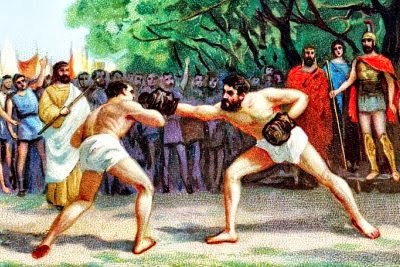 In ancient Greek boxing, there were no weight classes and opponents were not always evenly matched as they tended to be chosen at random.