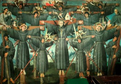 Although many had accepted Christianity when it first arrived in Japan in the 1540s, Hideyoshi Toyotomi took a dim view of the new religion and decided to expel some of its members in 1587. He believed that Portuguese traders were taking Japanese citizens as slaves and some Jesuits were pushing for the persecution of priests from the native religions, Buddhism and Shintoism. The expulsion was not actually enforced much until 1597, when twenty-six Christians were mutilated and crucified in Nagasaki, leading to them becoming known as the Nagasaki Martyrs (depicted below). After this, the law against Christianity was not particularly enforced again as a result of the lucrative trade he enjoyed with the Portuguese and other foreign nations.