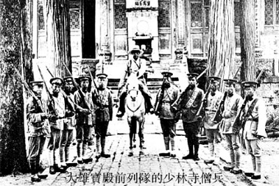 The fall of the Ching Dynasty in 1911 after a revolt led by Dr. Sun Yat-Sen saw an upturn in the fortunes of the Shaolin and in Chinese martial arts in general. The secret styles that had been handed down from master to student started to be taught publicly and many books on the subject were published. During the civil war in China in the 1920s between the Communist forces of Mao Tze Tung and the Nationalists led by Chiang Kai-Shek, the Shaolin monks were further persecuted. This time it was due to their neutrality in a conflict that was fuelled largely by overstated national pride, though they did have by this time warriors who could fight in a modern battle (see image below).